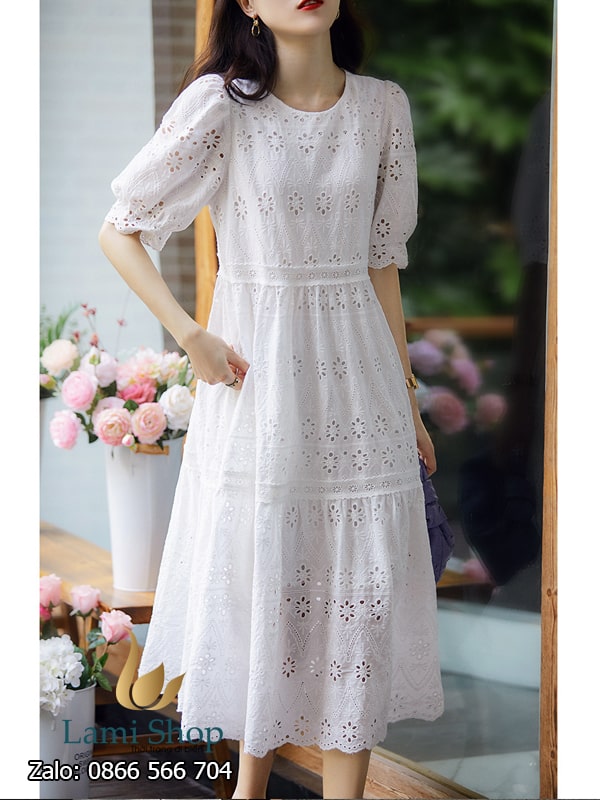 Váy baby doll trắng đi biển cho người béo đẹp có tay – LM2538