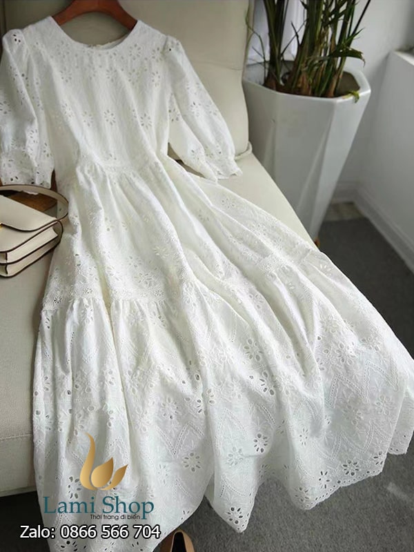 Váy được làm từ chất liệu ren cotton mềm mại, thoáng mát, giúp làn da được thở và dễ chịu dưới ánh nắng. Chất liệu này cũng có khả năng thấm hút mồ hôi tốt, rất phù hợp cho những hoạt động vui chơi bên biển.